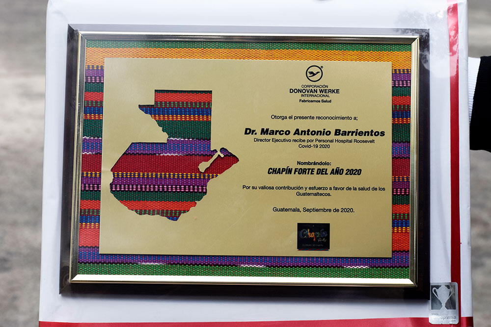 Este año ante la situación de Covid-19, los equipos de trabajo en los hospitales han jugado un papel determinante, en donde sin distingos ni límites de entrega, han sido el adversario más fuerte e inquebrantable ante esta pandemia, es la razón por la que el Chapín Forte 2020 le fue entregado al Dr. Marco Tulio Barrientos, Director General del Hospital Roosevelt y su equipo de trabajo, quien al recibir el reconocimiento, hizo énfasis en que cada uno jugaba un rol insustituible, ya que lograr lo que han logrado no hubiera sido posible, sin su disposición y valentía, pues nunca condicionaron, ni cuestionaron el tener que trabajar jornadas sin descanso y de riesgo a las que fueron sometidos, sacrificando feriados, cumpleaños, familia y fines de semana, aún a costa de sus propias vidas, anteponiendo la necesidad de la ciudadanía y su compromiso con la vida de miles de guatemaltecos que asisten al hospital, no solo en busca de alivio, sino de esperanza. “El Chapín es eso, un chapín fuerte y unido, para los demás chapines”. Dr. Marco Tulio Barrientos.